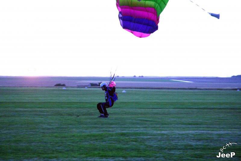 Le coucher de soleil était sympa. J’ai pris quelques photos en sous exposition pour faire ressortir les couleurs et c’est à ce moment la qu’un groupe de parachutiste s’est posé. Vite, vite, quelques photos prise a l’arrache et voila le résultat :