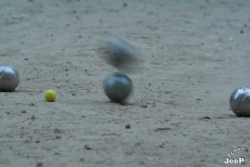 Première tentative de photo de pétanque : faudra plus de lumière pour monter en vitesse d’obturation ... ;-)
