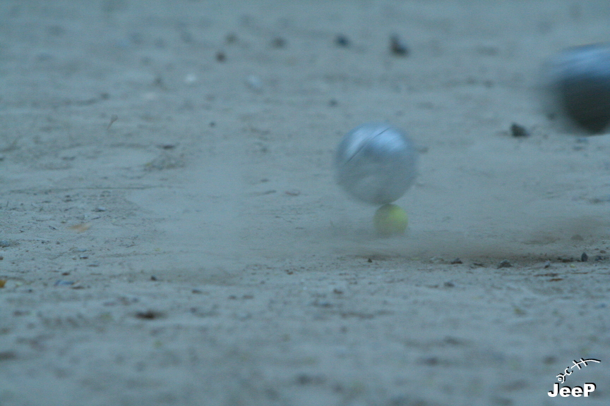 Première tentative de photo de pétanque : faudra plus de lumière pour monter en vitesse d’obturation ... ;-)