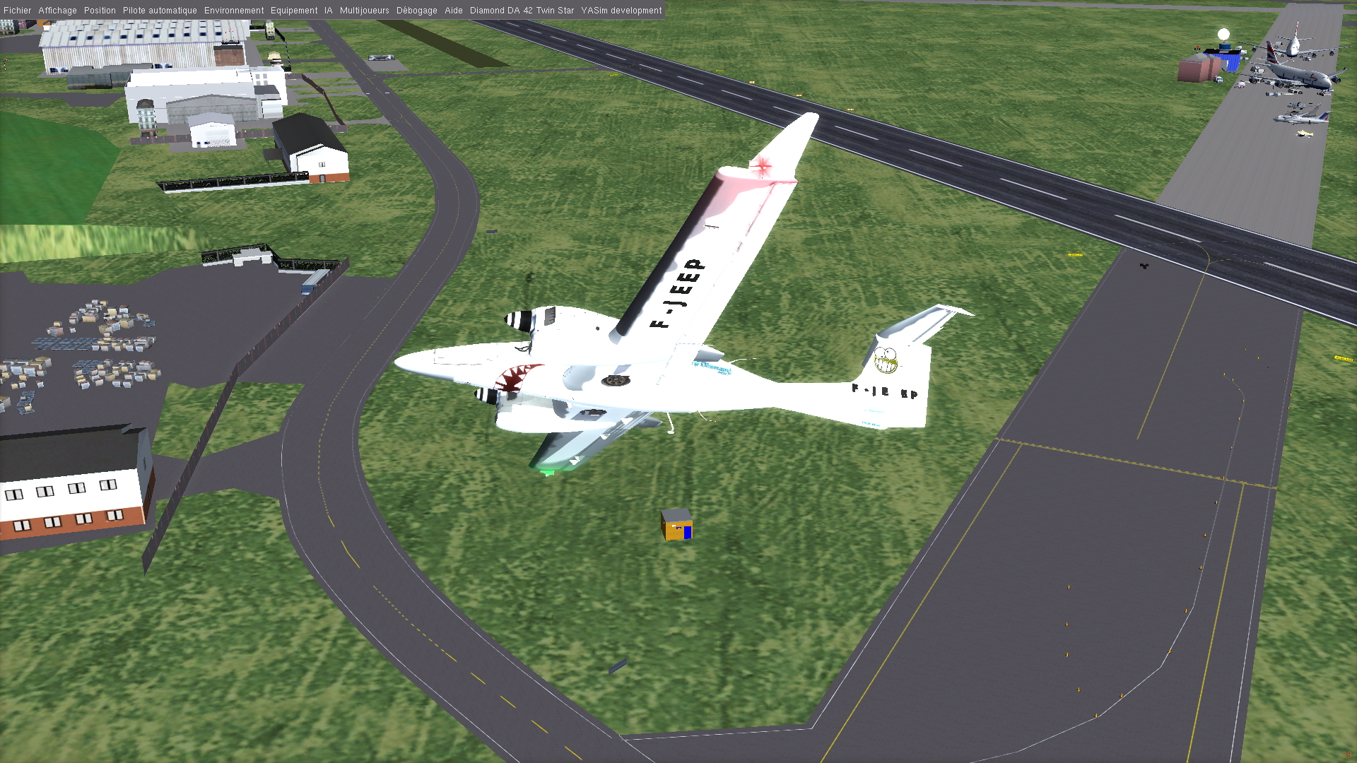 Le circuit de Top Gear existe dans flightgear !! Il s’agit de Dunsfold. Son code est EGTD. Et on peut y voir les plots qui délimitent les pistes d’essais de voiture ... On peut aussi y voir les avions qui y sont stationnés sur une piste à coté.